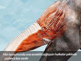 Bilim adamları filin hortumunda yüz binlerce kas olduğunu keşfettiler. Üst üste halkalar halinde dizilmiş bu kaslar filin hortumuna büyük bir esneklik kazandırır.