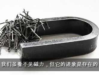 两块尺寸、面积、重量、颜色、形状都一样的铁,我们用肉眼无法区分,一个是有磁力的,一个没有,若我们有一小块有电的金属接近它就会吸住它,