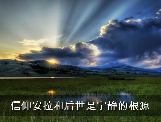 的确“宁静”只有一个源泉,即:信仰安拉 (服从他)和信仰 后世 (这个信仰阻止你伤害大地上的被造物)这个深湛的信仰,