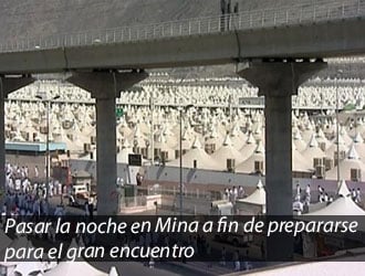 que es el día del Tarwiya (la primera jornada de la Peregrinación), los peregrinos se dirigen a Mina para pasar la noche, completando cinco salats, a fin de prepararse para el día de la Gran Encuentro en Arafat. Ese día, el Día de Arafat, es decir, el noveno día de Dhul- Hiyya, los peregrinos se dirigen a Arafat después de salida el sol, repitiendo siempre el talbiyah (Labayka Allahouma Labyk), declarando la unidad de Allah, (el tahlil) decir: (La ilah illa Allah), es decir; no hay Dios excepto Allah, y hacer el Takbir (Allahu Akbar) es decir; Allah es el Más Grande.