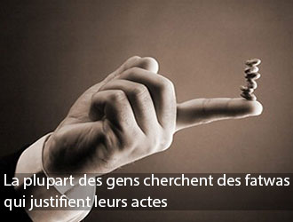 Beaucoup de gens cherchent à justifier leurs actes louches par des fatwas bien qu’il y ait un large écart entre la fatwa et la piété ; la piété l’emporte sur la fatwa ; il m’arrive des fois de tenir des propos bizarres à celui qui me pose une question, je lui demande de se calmer car il y a une fatwa à chaque désobéissance ; « si tu vises à avoir une fatwa, je peux te la fournir, elle est disponible car à chaque désobéissance il y a une fatwa, mais si tu cherches la piété sache que cette issue déplait à Allah, exalté soit-il.
