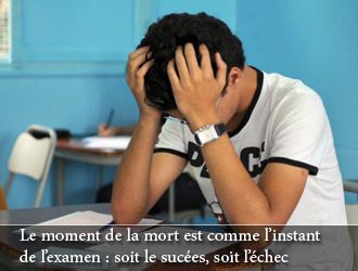 Imagine un étudiant assidu, le moment de l'examen ne quitte pas son esprit tout au long de l'année scolaire, quand vient le mois de juin, et qu’il entre dans la salle d'examen et quand les questions sont distribuées, il n’est ni effrayé ni terrifié parce qu’il a lu le livre maintes fois, il l’a récité, analysé, compris, répondu à ses questions, et il l’a bien assimilé. Tu le vois en ces trois heures dans les moments les plus heureux de sa vie parce qu'il récolte les fruits de toute l'année.