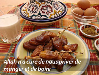 … de veiller jusqu'au repas du Souhour, sans oublier de faire allusion, pendant la soirée, aux calomnies et aux médisances qui compromettent les conversations. Malheureusement on comprend mal les objectifs du jeûne, qui ne signifient pas arrêter de se rassasier et de s'assouvir, c'est une grave erreur de le penser, Allah Exalté Soit-Il n'a cure de nous voir faire cela.