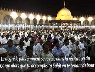 Pour cela, quelques hommes de science ont dit : Le degré le plus élevé de Rétribution à propos de la récitation du coran, c'est de Le réciter en se tenant debout, ou en l'écoutant alors que tu es à la mosquée.