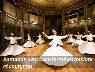 Cela est devenu une des habitudes chez les Musulmans : la plupart des programmes artistiques vous présentent un programme en commençant par : « En l’honneur du mois de Ramadan béni », au moment où la représentation est de mauvais goût, pleine de provocations et transgresse la loi islamique, tout en prétendant observer un témoignage de respect pour Le Mois Béni. Ce problème concerne tout le monde islamique ; La Religion s'est transformée en folklore et en coutumes !!