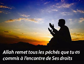 Quant aux péchés commis à l’encontre des droits d’Allah (Exalté soit-Il), ils seront remis par le jeûne du mois du Ramadan et tu redeviendras aussi pur que le jour où ta maman t’a mis au monde. Telles sont les paroles du noble Prophète (Salla Allahou ‘Alaihi wa Sallam).