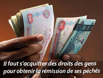 Les droits des ayants-droits doivent leur être rendus ou alors il faut penser à obtenir leur pardon. Donc, soit par la restitution des droits aux ayants-droits, soit par l’obtention du pardon des gens lésés, on obtient la rémission de ses péchés.