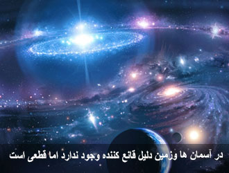 در آسمان ها و زمین نشانه های بیشمار و بی نهایتی وجود دارد. در آسمان ها و زمین وجود دارد که اگر چه قانع کننده نیست اما قطعی است و دلیل قاطع از دلیل قانع کننده رساتر است. می گویند قرآن قطعی الثبوت و قطعی الدلالة است. خداوند سبحان می فرماید:
