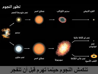 النجوم حينما تهرم تنكمش، وتصبح حركتها إلى الداخل، وتتحد الإلكترونات مع النيترونات، وتشكل وحدةً مندمجة تلغي الفراغات البينيَّة، فيمكن أن تصبح الأرض بحجم البيضة بالوزن نفسه، فلو وضعت كرةً من الحديد فوق سائلٍ هُلامي لثقبت، فقال علماء الفلك: لو أن هذا النجم الثاقب، أي النجم المُنكمش الذي أصبح حجمه صغيراً ووزنه كبيراً وضع على الأرض لخرج من طرفها الآخر من شدة كثافته، إن هذا النجم فيه أعلى كثافة على الإطلاق، يثقب كل شيء.
