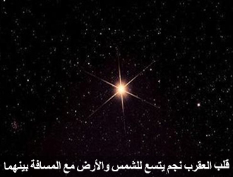 ونجم قلب العقرب يتسع للأرض والشمس مع المسافة بينهما، ألسنة اللهب التي صُوِّرت أثناء الكسوف طولها مليون كيلو متر تخرج من قرص الشمس، وبعض الألسنة نصف مليون، مليون كيلو متر لسان اللهب الذي يخرج من أشعة الشمس، من قرص الشمس،
