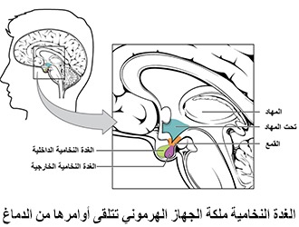لذلك إذا رأى الإنسان الخطر بشبكية العين، ثم أدركه بدماغه بحسب المفهومات السابقة، والدماغ ملِك الجهاز العصبي يأمر ملكة الجهاز الهرموني وهي الغدة النخامية،