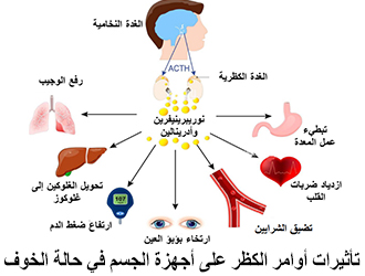 فالخائف يرتفع نبض قلبه ويلهث، ثم إنَّ هذا الكظر يُعطي أمراً للأوعية المحيطية بأن تضيق لمعتها كي يُوفَّر الدم للعضلات،