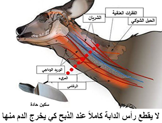 أمّا إذا بقي الرأس وقُطِعت الأوداج وجاء الأمر الاستثنائي إلى الكظر ثم إلى القلب، يرتفع النبض إلى مئةٍ وثمانين نبضة، عندئذٍ يخرج الدم كله خارج الدابة وهذه مهمة القلب بعد الذبح، هذا ليس من عند النبي عليه الصلاة والسلام، ولا من ثقافة النبي، ولا من بيئة النبي، ولا من مُعطيات بيئة النبي إنما هو: