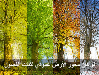لو أن الأرض دارت حول نفسها بمحور عمودي لثبتت الفصول ، ليس في الأرض أقوات ، كل منطقة لا يمكن أن تُنْتِج النبات ، حر دائم يميت النبات ، برد دائم لا يُنْبِت النبات ، الله سبحانه وتعالى جعل محور الأرض مائلاً سبعاً وعشرين درجة ، بهذا الميل تأتي أشعَّة الشمس عموديَّةً إلى نصف الكرة الشمالي ، هنا صيف ، فإذا دارت الأرض حول الشمس هكذا جاءت الشمس عموديَّةً على نصف الكرة الجنوبي ، لذلك هناك تبدُّل مستمر بين الصيف والشتاء في نصف الكرة الشمالي والجنوبي .