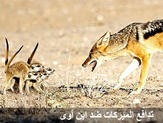 ها هنا مثال لقد ابتعدت الميركات عن العش لإيجاد طعام لها ، في هذا اليوم الصائب عند عودتها واجهت وضعاً خطيراً ، لقد تربص ابن آوى بها في مدخل العش الذي يوجد فيه الصغار ،