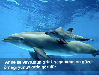Şimdi, denizde yaşayan yunuslarla alakalı bilimsel bir konudan bahsedelim. Anne ile yavrunun ortak yaşamının en güzel örneği yunuslarda görülür.