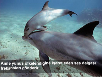 Ve anne yunus bu tehlikeli oyunu fark eder, hemen yavrusunun yanına gelir, onu denizin dibine iter, kızgın anne burnu ile yavrusunun bedenine yüksek frekanslı ses dalgaları gönderir. Bu dalgalar annenin öfkeli olduğuna işaret eder.