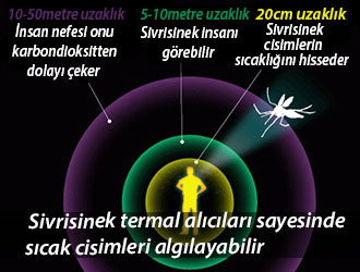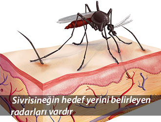 Sıcaklığın binde birini hissedebilecek termal alıcılar… Sivrisinek cisimleri sıcaklıklarına göre renklendirerek görür. Kanı çözüp ayrıştıran maddeleri, uyuşturucu maddeleri, radar cihazları ve sıvılaştırma sistemleri vardır. Sonra kanatlarını inanılmaz derecede çok defa çırpabilir.
