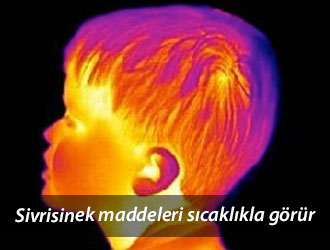 Sıcak bir cismi farklı bir renkle görür. Böylelikle kendisine Allah tarafından verilen bu alıcılar sayesinde, yatağındaki bir çocuğun alnına onu rahatsız etmeden konabilir.