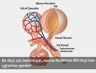 Her litre sütün üretimine dört yüz ölçü kan katkıda bulunur. Fakat ortaya ne çıkar? Kan damarlarına komşu olan meme bezi, kendine uygun olan kanı, çözünmüş gazları, proteinleri, nişastayı, şekeri ve mineralleri alır. Allah Azze ve Celle buyuruyor ki: